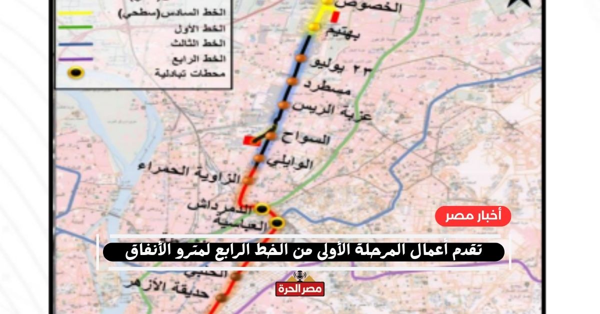 تشهد أعمال تنفيذ المرحلة الأولى من الخط الرابع لمترو الأنفاق تقدمًا كبيرًا، حيث تتابع وزارة النقل سير المشروع الذي يُعد من أهم مشروعات النقل الجماعي المستدام في القاهرة الكبرى.