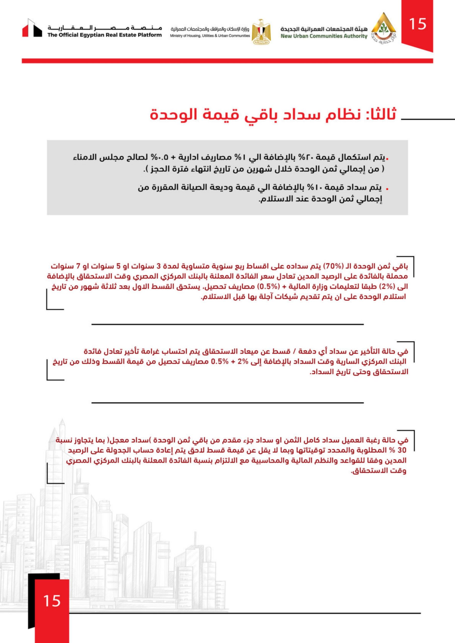 يمثل هذا الطرح فرصة حيوية لعدد كبير من الشباب والأسر المصرية للحصول على سكن لائق في المدن الجديدة بتسهيلات في السداد تصل إلى سنوات.